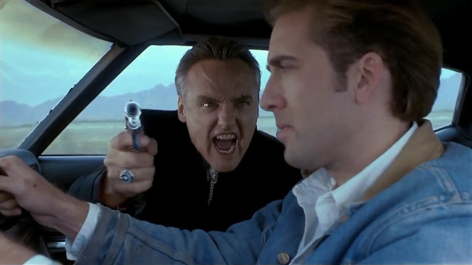 You always know you’re in for something rather interesting when a mysterious drifter walks into some small town in a movie... which is just the case in Red Rock West (1993), a neo-noir infused modern western crime thriller co-written and directed by John Dahl (his brother Rick, the other writer and associate producer). The drifter is Michael (Nicolas Cage – in a more reserved performance), an injured former Marine and rather quiet Texan who is simply looking for some oil field work in Wyoming... but is having no luck. Down to his final five bucks, he drives to the next closest town, Red Rock, and pops into a bar for a drink.