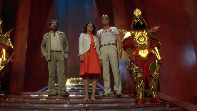 An over the top, campy kitsch cult classic that plays like a wildly fun rock opera, Flash Gordon (1980), directed by Mike Hodges, and based on the Alex Raymond comic strip first published in 1934, is perhaps most intriguing for attracting the rock band Queen to compose and perform the theme song and score with the help of orchestral scorer Howard Blake (though much of his work was cut in favour of Brian May). Produced by the famed Dino De Laurentiis, this would be his third and final creation of a former comic strip, with the first two being Barbarella and Danger: Diabolik, both released in 1968