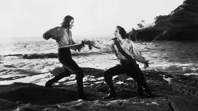 Crafted with great care, not only does Curtiz capture the glint in Flynn’s eye, or the will they/won’t they romance of the very different could be couple, but, being European, he brings a certain German expressionism to the feature – with mesmeric black and white cinematography, and stunning shadow and light with the help of cinematographers Ernest Haller and Hal Mohr. With the studio building full sized ships within one of their stages, they also matched that with impressive eighteen foot miniatures to depict all the action. It is also worth noting that an intense sword duel was shot at Three Arch Beach in Laguna Beach – an almost unheard of on location shoot for this era. With everything already quite polished for the time, check out further swashbucklers from this director – The Adventures of Robin Hood and The Sea Hawk, to see how Curtiz further redefined the sub-genre.