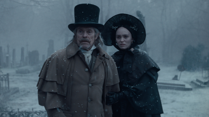 In many ways staying true to the original Nosferatu and Dracula source material, the narrative follows newly married couple Ellen and Thomas Hutter (Lily-Rose Depp and Nicholas Hoult), as the legal clerk who must immediately depart for Transylvania to complete an estate deal with still ancient Dacian language speaking (that is early Romanian) Count Orlok – a.k.a. Nosferatu (Bill Skarsgård), who is looking to leave his drafty old castle surrounded by superstitious gypsies in the Carpathian mountains and upgrade to a drafty old Manor house in Germany. . . much to the chagrin of Thomas’ wife – who is struggling with what doctors at the time would term to be melancholia (though she also has seizures once in a blue moon).