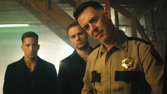 This time faced with a town that secretly holds a smuggling route coming down from Canada, the Sheriff, Abel (Colin Hanks), is not exactly the law abiding type, while the de facto head of the place (and amusement park), Wyatt Martin (John Ortiz), is not what he seems, grudgingly answering to wild card boss, Lendina (Sharon Stone – clearly having a ball with this quirky nutso character. . . bizarrely channeling an almost Sam Rockwell type dancing vibe in this).