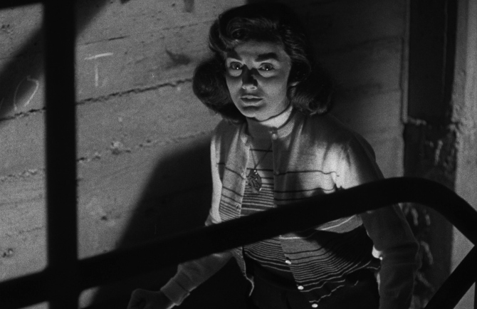Layered with absolutely striking chiaroscuro from cinematographer Joseph F. Biroc (It’s a Wonderful Life), nearly every shot is etched with moody shadow or bright light, as well as the classic barring theme, capturing the clear desperation, rampant corruption, gun-strewn violence and sleazy temptation found throughout the big city with a most visual cinematic point.
